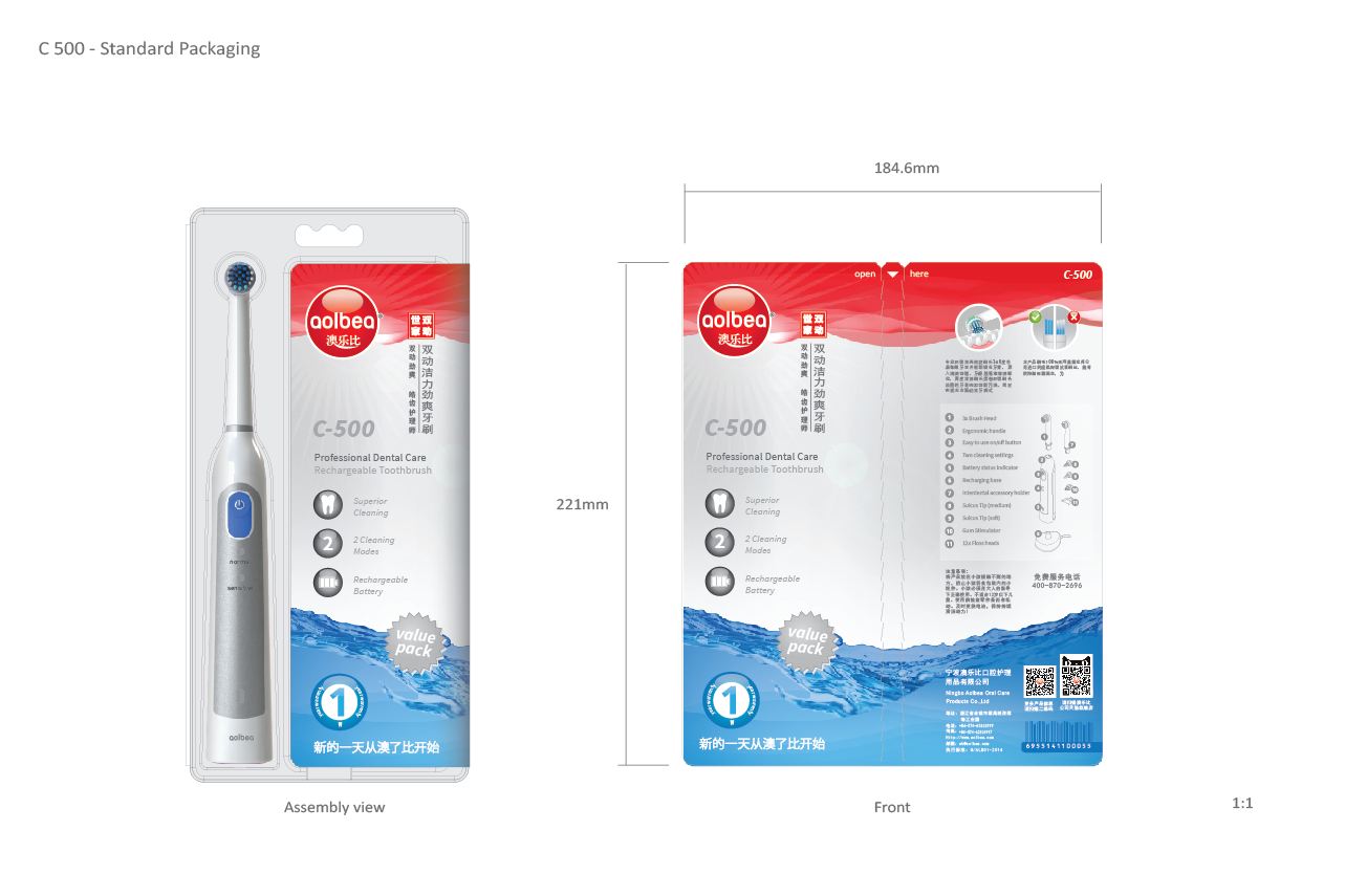 For a Chinese toothbrush manufacturer we designed a full line of electric toothbrushes. We started with an extensive research of the American, European and Asian market, analysed the differences in technologies and price points. We defined the target customers to assign different functions and designs to the toothbrushes to address their needs.